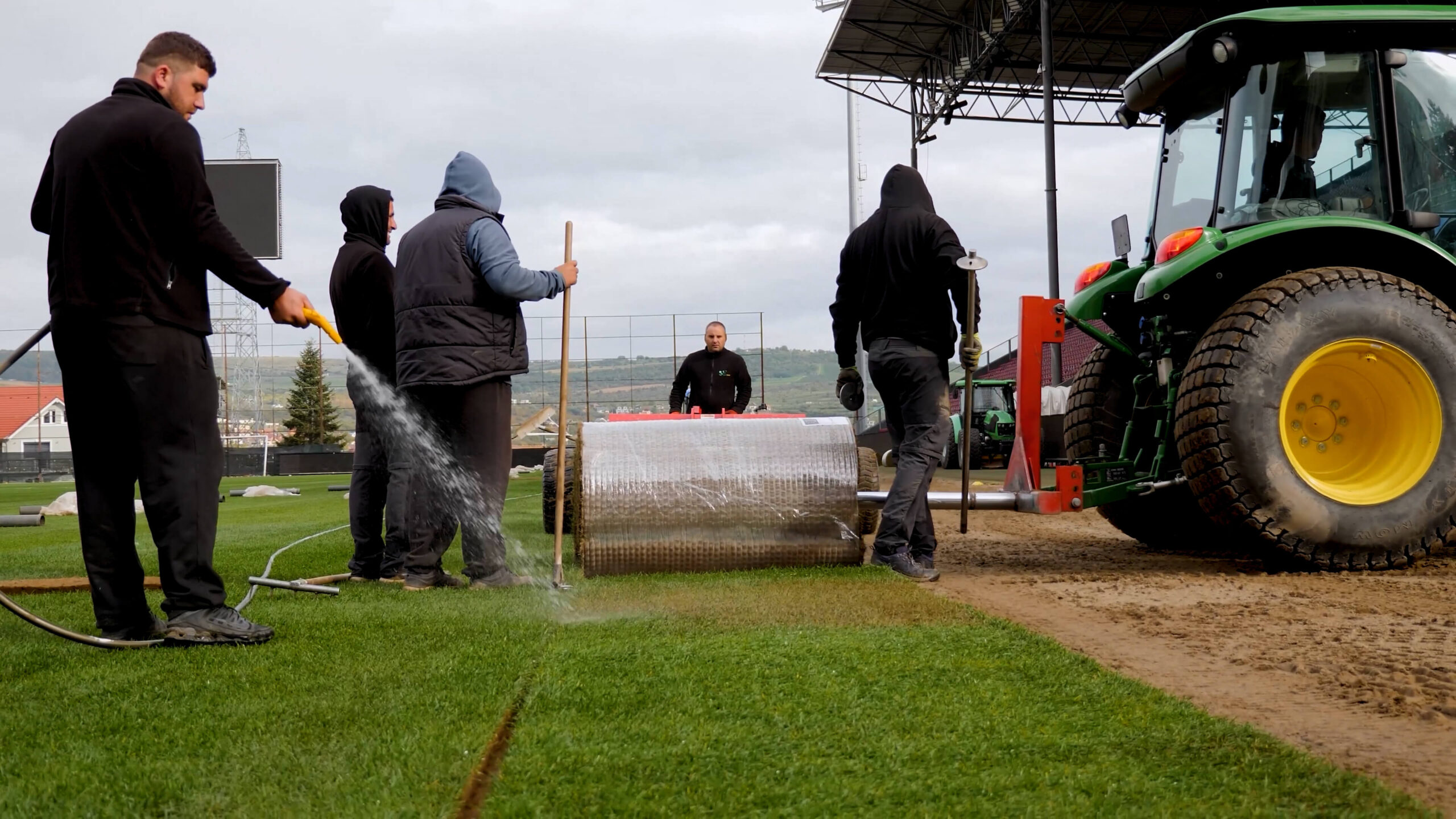 • Installing natural grass rolls